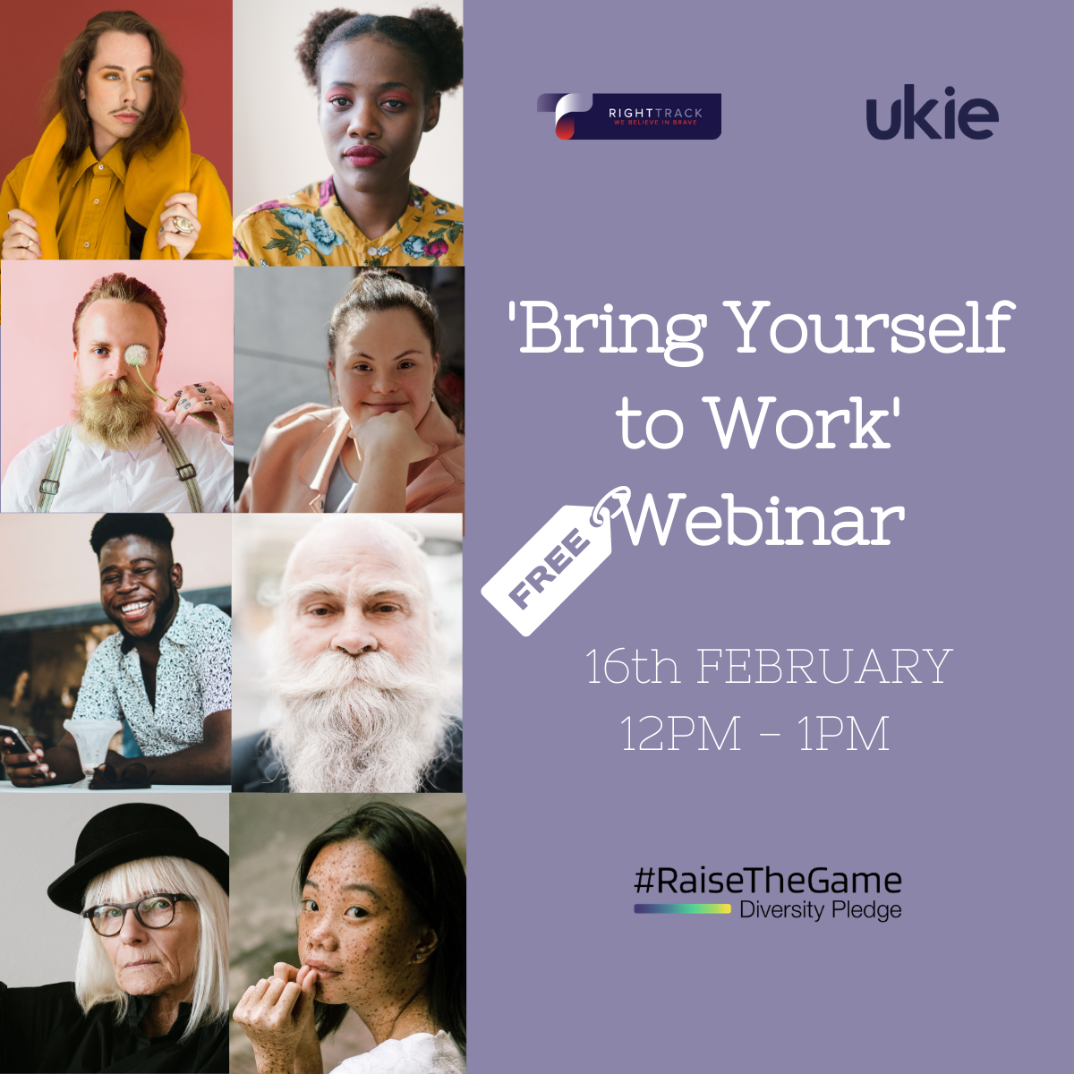 - The 'Bring Yourself To Work' #RaiseTheGame 1 Year Anniversary Webinar, where we have partnered up with RightTrack Learning to deliver a motivational 60-minute, interactive webinar to reflect on the active part we can play in building an inclusive workplace, starting with accepting and including ourselves.
