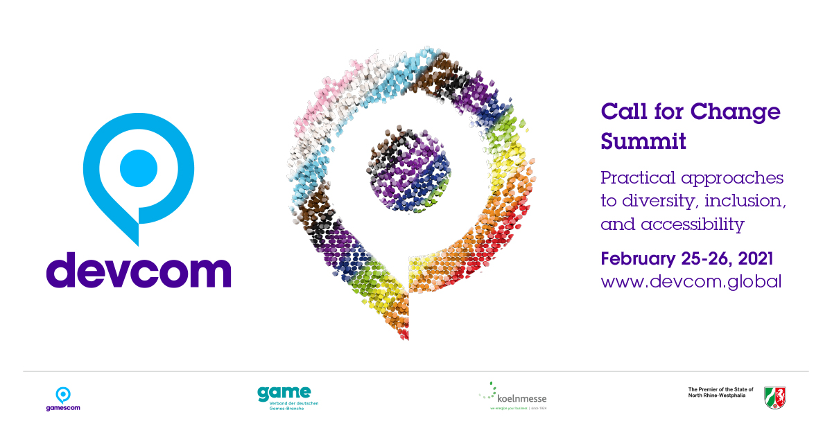 devcom is gamescom’s official game developer conference, which takes place every August – currently, of course, everything we do is happening online. The Call for Change Summit – focusing on diversity, inclusion, and accessibility – is the first in a series of quarterly side-events. And what better way to kick-off the new year by tackling a topic that is very dear to all our hearts?!